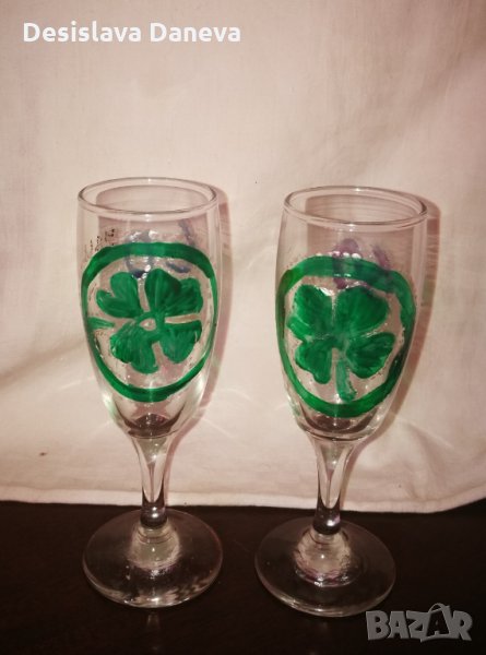 Любителски рисувани стъклени чаши за 60-ти юбилей → Обява 29696878