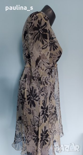 Японска коприна - рокля със сребристи декорации във флорален принт "EKseption"/ японска коприна