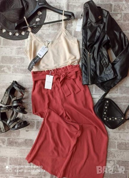 Нов ефирен панталон,широки крачоли, ластик в талията,връзка, странични джобове, дължина до глезена