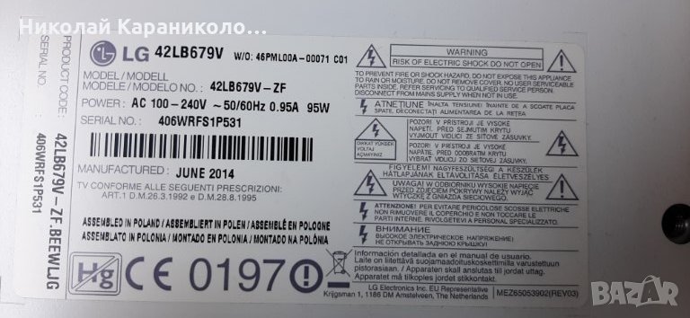 Продавам тв LG-42LB679V за части по причина-счупена матрица/LC420DUH/.Редовни съответно: