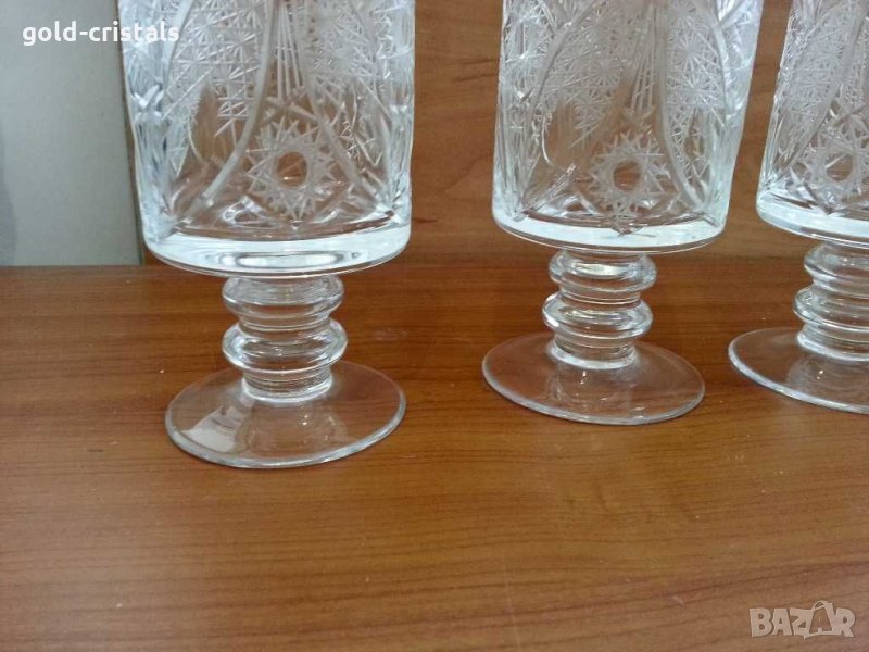 Кристални чаши луксозна серия богата гравюра универсална форма и размер 6бр-480лв и 4бр -290лв ръчно гравирани универсален размер за ракия уиски аперитив вино бира вода сок безалкохолно десерти Крем сладолед мелба сервиз комплект сет лот ретро арт декор колекция стари антикварни предмети обзавеждане за дома и семейството подходящи за подарък за ценители и колекционери