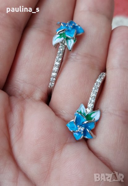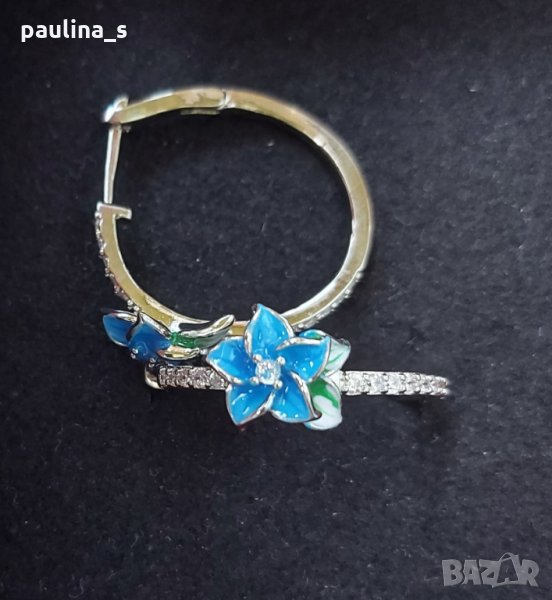 Халки с декорации от ръчно рисуван емайл и кристали. Закопчаването е стабилно, камъните са искрящи на светлината. Камерата не може да улови красотата, спират дъха, като ги гледаш. Сплавта е хипоалергична и има хипоалергично родиево покритие, не потъмняват. Подходящи са за подарък или повод.