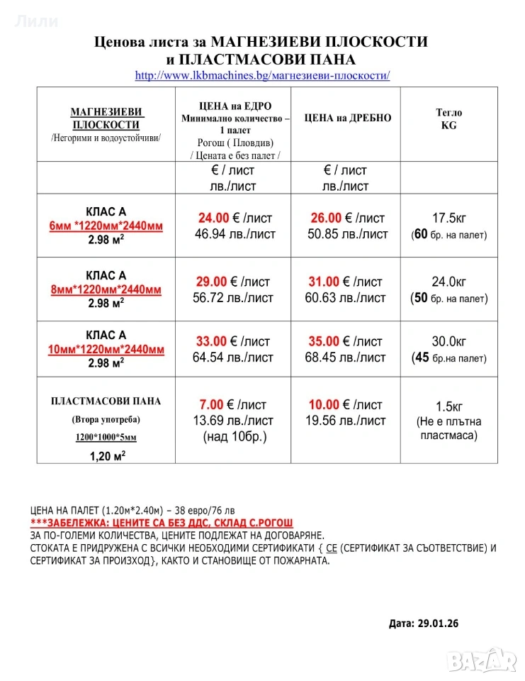 Посочената цена е на едро на кв.м за дебелина 6мм, БЕЗ ДДС