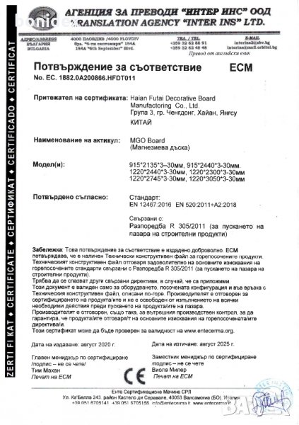 Магнезиеви Плоскости 122*244 см, Негорими и Водоустойчиви