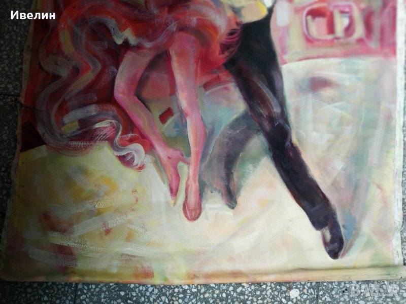 картина-фигуративна.масло на навито на руло платно с размери 100см/80см.заеблежка-посочена е.
