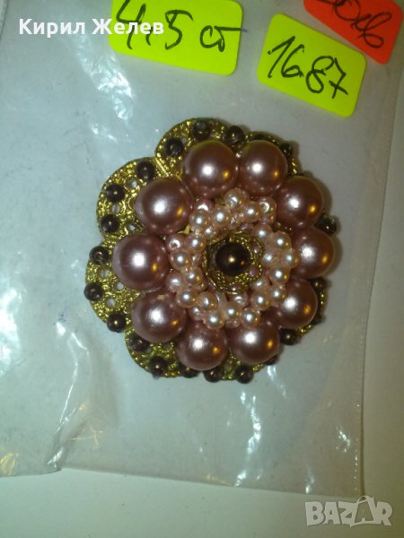 СТАРИННА БРОШКА с РОЗОВИ ПЕРЛИ и МЪНИСТА ФИЛИГРАН БРОНЗ ПОЗЛАТА 12316