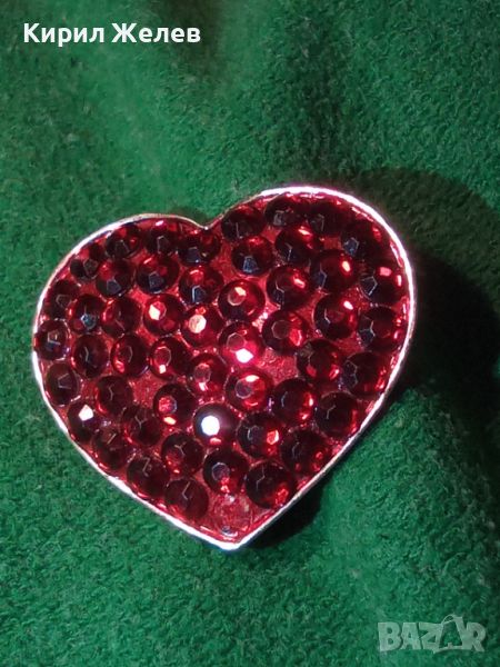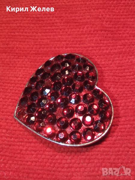 БРОШКА СЪРЦЕ с ЧЕРВЕНИ ФАСЕТ КРИСТАЛИ СРЕБРИСТА 7871