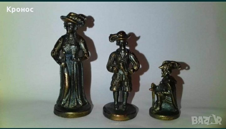 Фигурите са отливани на ръка от метал (бакър), полирани и покрити с защитен лак. Цената е за 3-те.