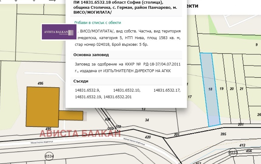 Продава ПАРЦЕЛ, гр. София, с. Герман → Обява 29730319