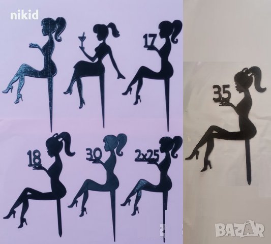 Лейди години дама черен пластмасов топер украса за торта рожден ден моминско парти юбилей → Обява 29732933