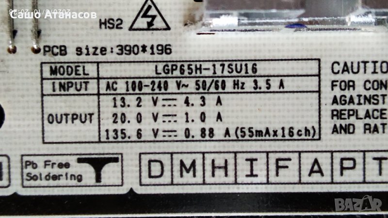 Захранване: EAX67170501(1.5) / LGP65H-17SU16 - 130лв.