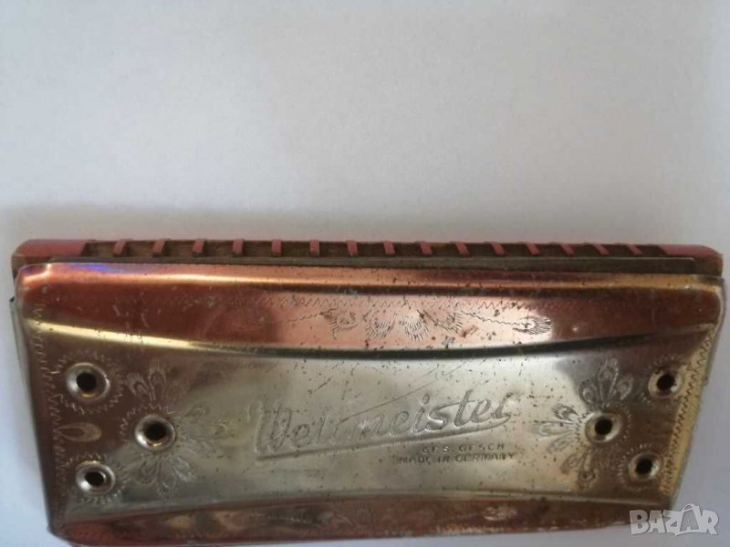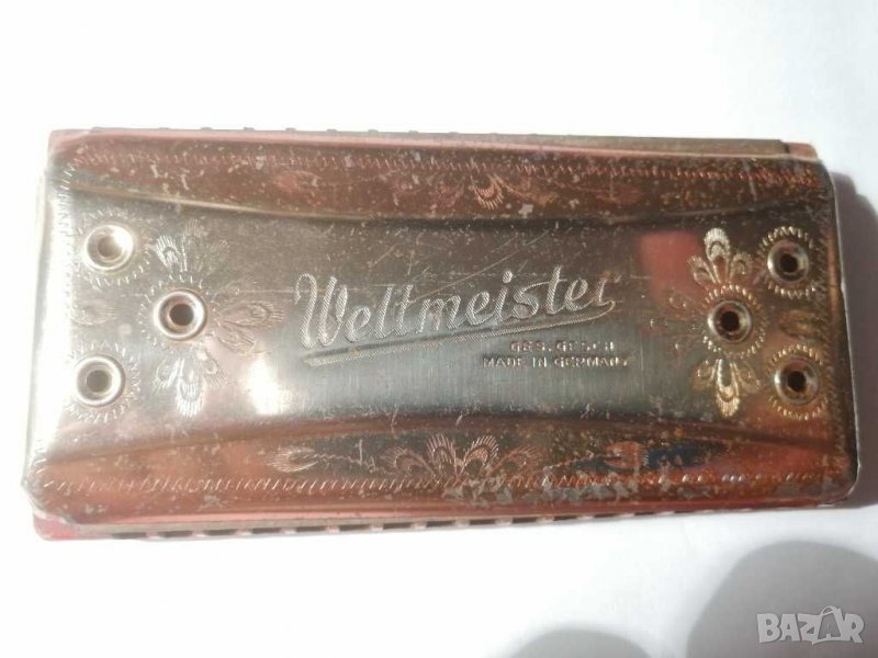 Стара хармоника Weltmeister - Ges. Gesch, Германия. Хармониката е двустранна с размери :12/6/2 см,със следи от времето. Други проблеми няма.