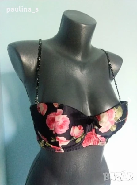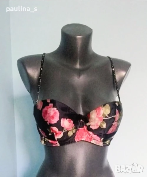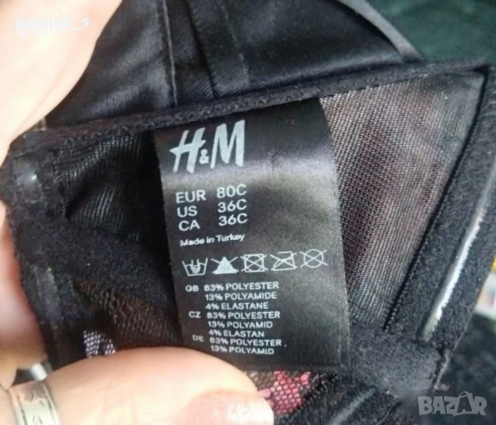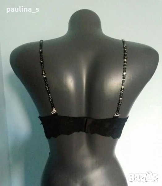 4️⃣. Колаж / Уникален сутиен с подвижни презрамки и подплънки "H&M" / 80C. Цената е крайна 29,99лв / 15 евро. Уникален сутиен с подвижни презрамки, банели и подплънки. Чашката не е твърда и стига до средата на гърдата, може да се носи и от размер B - с подплънки, и от размер D - за секси аутлук като бюстие. Презрамките са с черни пайети и мъниста - цена 8,99лв и не се делят. Сутиенът не е нов, има нормални следи от употреба. ПодГръдна Обиколка 39см до 48см едностранно.