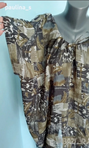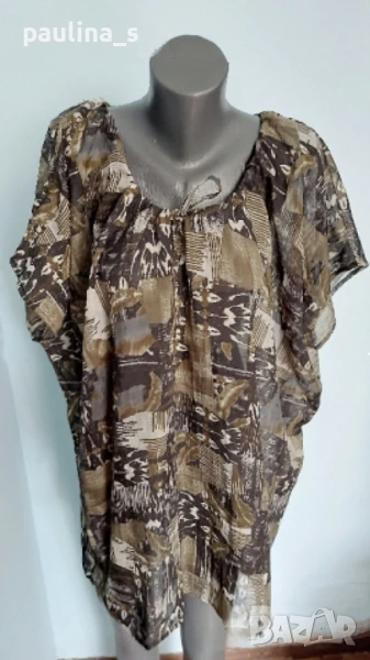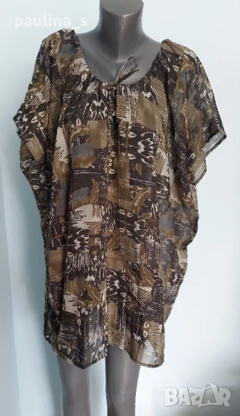 2️⃣. XL / 3XL -"Tina by Marks & Spencer". Цената е крайна 34,99лв / 17,4 евро. Маркова плажна туника от ефирен шифон с регулация на деколтето и трапец кройка. Без дефекти, една бройка е, става за посочените размери. Рамене и ръкави 92см едностранно