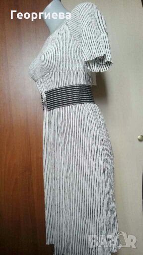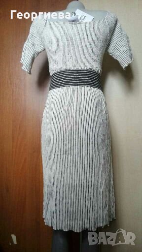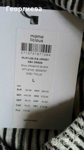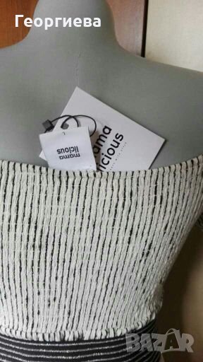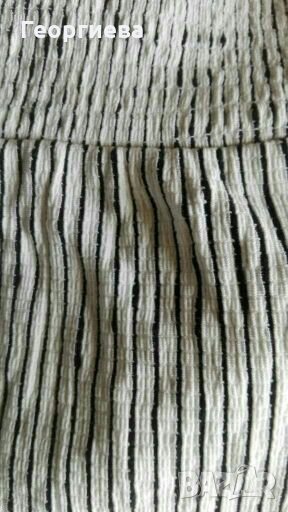 Разкошна е!Много еластична, мека, цвят бяло и черно, като материята е рипсена, плътна.По етикет е размер L, но е подходяща и за S и М