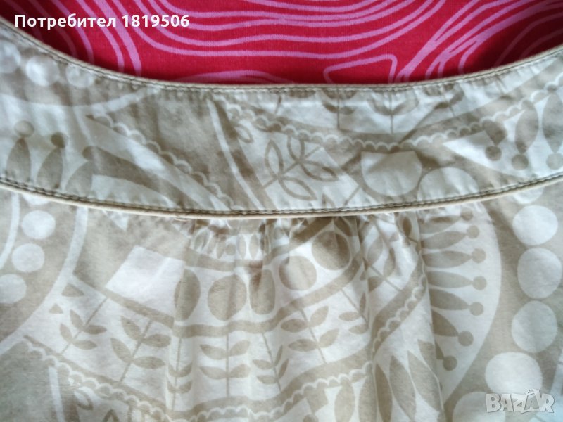 много елегантна рокля(която може да се носи и от бременна жена) от финна памучна материя и приятен летен десен, номер 38 , размери : дължина - 82 см, ширина при раменете - 35 см, гръдна обиколка -98 см , обиколка на ханша - 116 см
