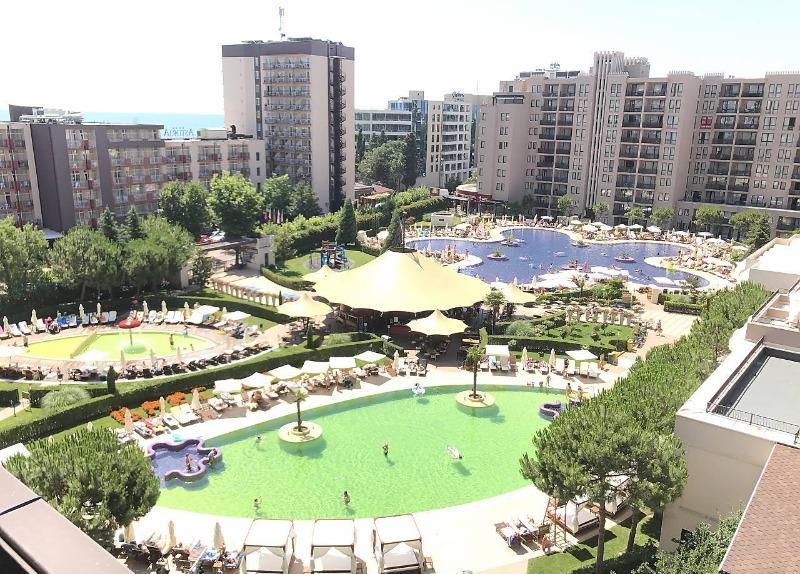 Луксозният комплекс се намира само на 50 м от плажа и разполага с прекрасни градини от над 9000 кв. м. и басейни 1700 кв. м.