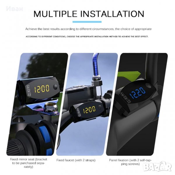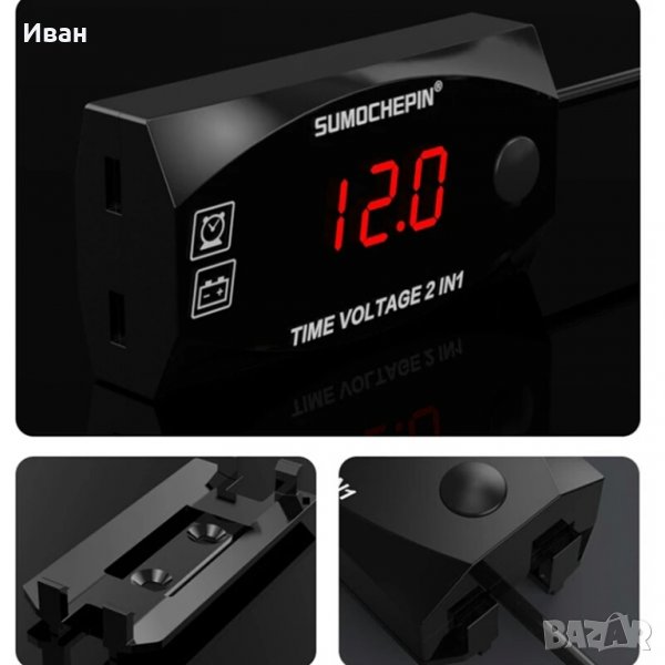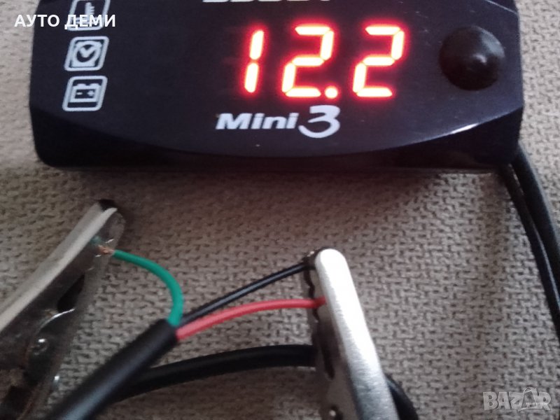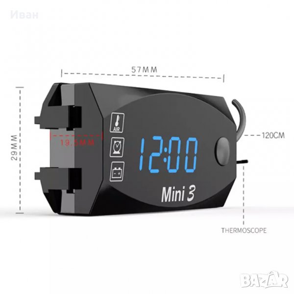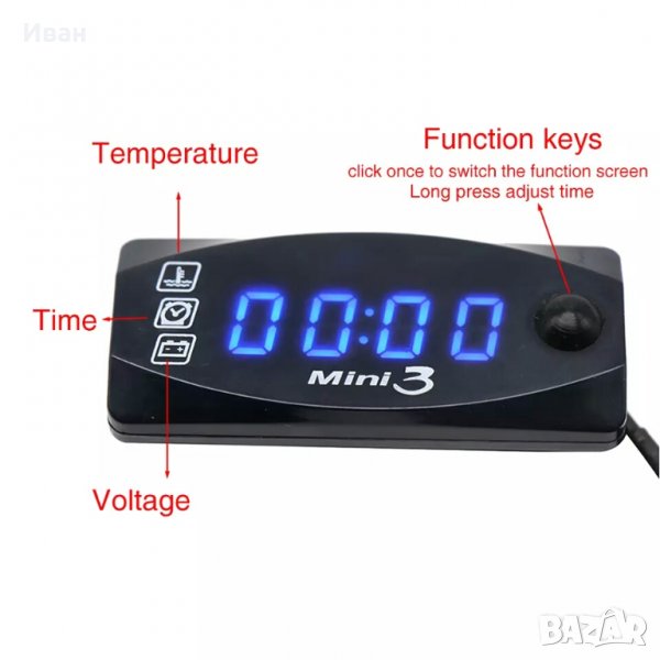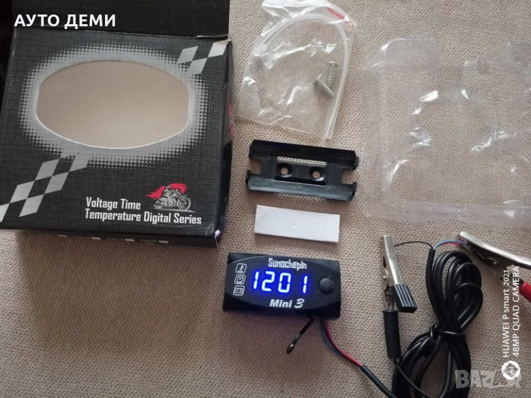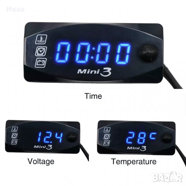 1 .Дигитален часовник , термометър и волтметър с кабел за свързване към постоянно захранване от 6 до 30 волта.