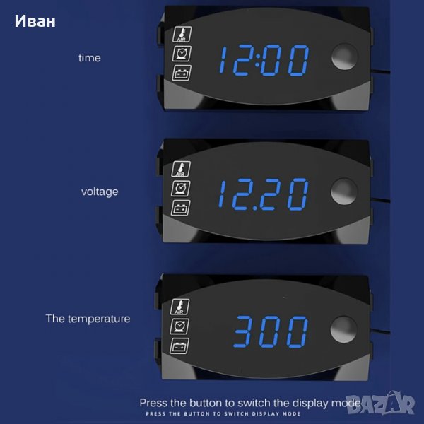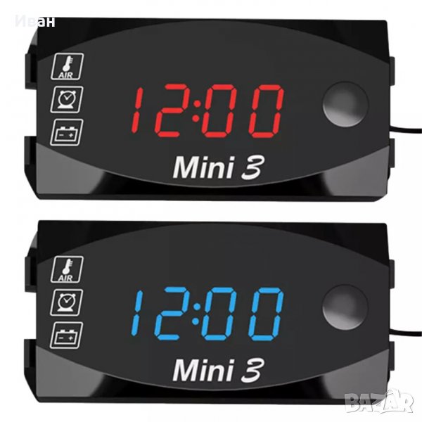 Продавам нови качественни дигитални часовници с волтметър и термометърът със светещи в синьо , червено , зелено или бяло цифри с постоянно захранване от акумулатор на автомобил ,мотор или камион .