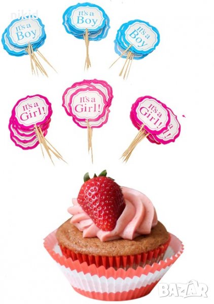 24 бр its a girl its a boy топери клечки момче момиче за мъфини кексчета парти бебешки gender party → Обява 29764786