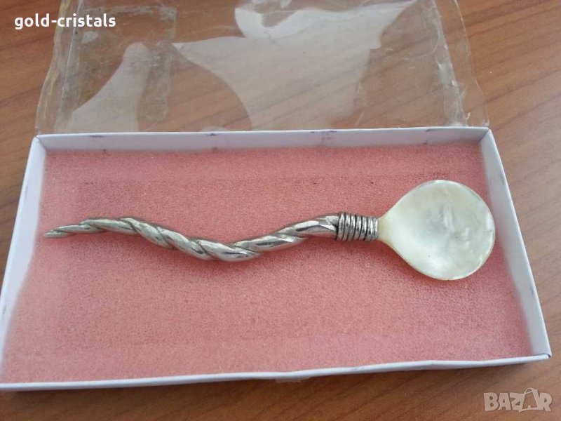 Лъжичка с естествен седеф за хайвер ювелирна ръчна изработка ретро арт декор винтидж колекция стара дизайнерски модел ретро арт декор винтидж колекция стари антикварни предмети обзавеждане за дома и семейството подходяща за подарък за ценители и колекционери
