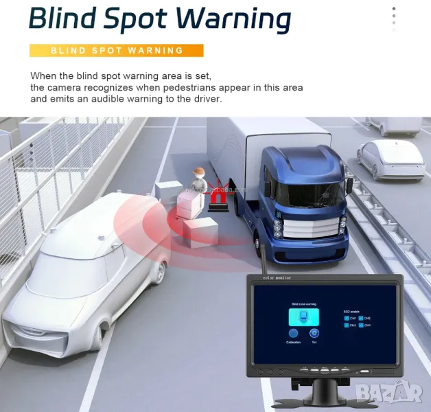 Безжична камера с монитор, паркиране, камион, заден ход, трактор, комбайн, парктроник, задно виждане