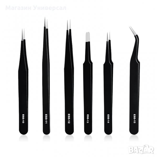 Комплект антистатични индустриални пинсети, технически бижутерски пинсети Пинсета за електроника