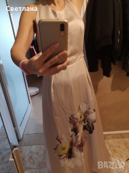 Страхотна дълга сатенена рокля. С подплата по цялата дължина на роклята. Подходяща за официално събитие, дори за бална рокля.