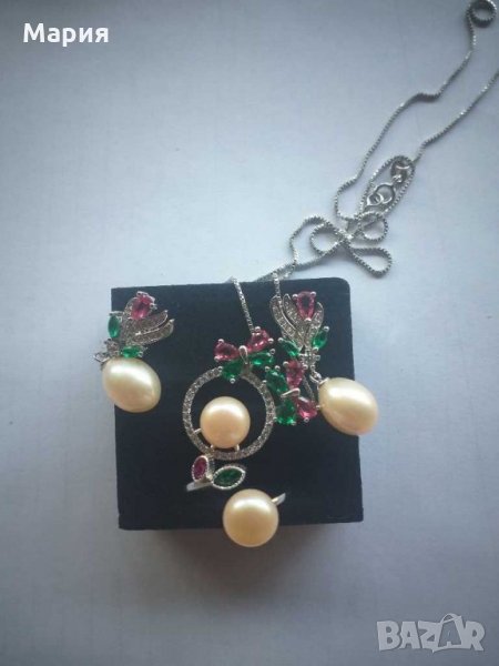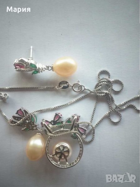 Комплект от стерлингово сребро и естествени перли → Обява 29790475
