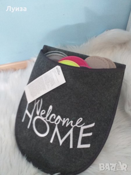 Сет от 5 чифта домашни чехли, поставени в голям декоративен чехъл → Обява 29791407