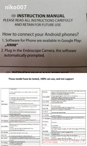 Преходник за USB, магнитен хващач,регулируемо лед осветление. За работа трябва да се свали приложение AN98 или USB camera.Пробвал съм на самсунг А 50 И А70 и работи без проблем.Вижте снимка 9 дали вашият телефон е съвместим.