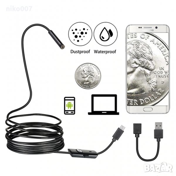 Ендоскопска камера за андроид и компютър-Ендоскопска камера за Android & PC.Микро камера за наблюдение, чрез която могат да се наблюдават трудно достъпни места.Фото и видео запис. Водоустойчива.
