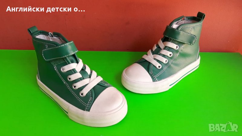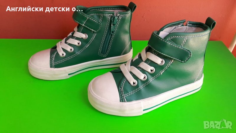 Страхотни кецове съставени от висококачествена еко кожа,внос от Англия,закопчават се с цип отстрани,връзките са ластични,имат и лепка,марка M&S.Номера Зелени-29(стелка 19.5см)