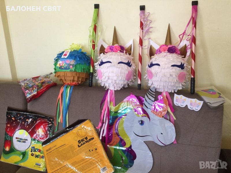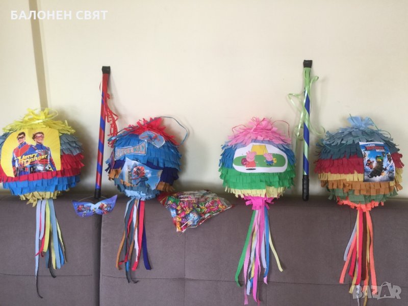 - Комплект Лакомства за напълване на пинятата 4.99 лв. (съдържа опаковани шарени меки фруктови бонбони - 30 бр, плюс 10 бр. големи фруктови близалки)