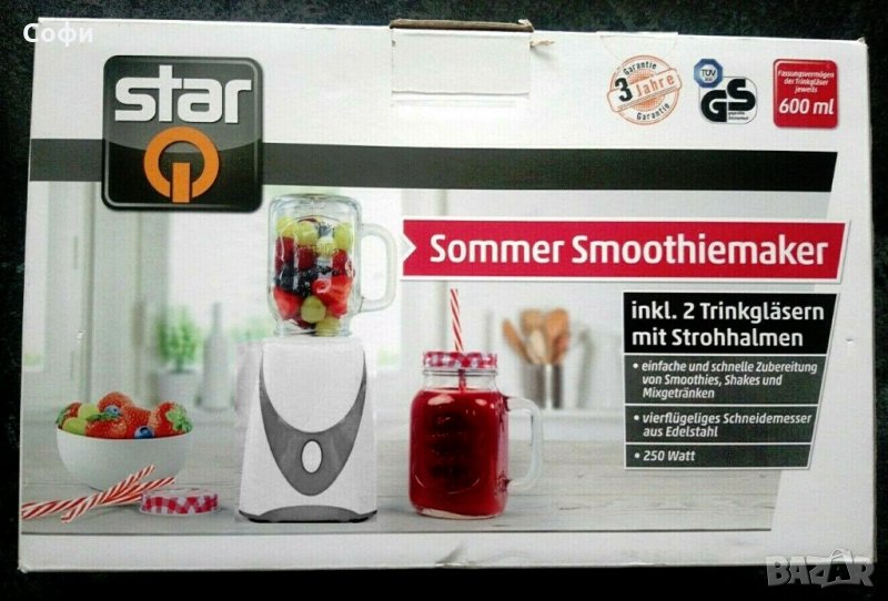 Включително 2 стъклени смесителя, които могат да се използват като чаши за пиене едновременно.