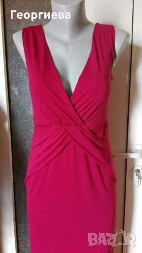 Страхотна нова тъмно розова(цикламена) рокля!Многи качествена, плътна материя.Има подплата до около средата на бедрата.По етикет е 36-38 р-р и отговаря на двата.