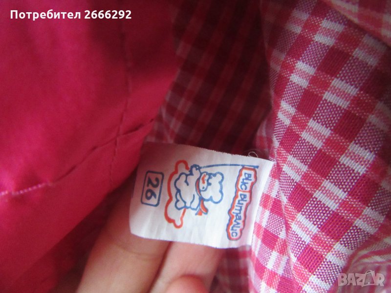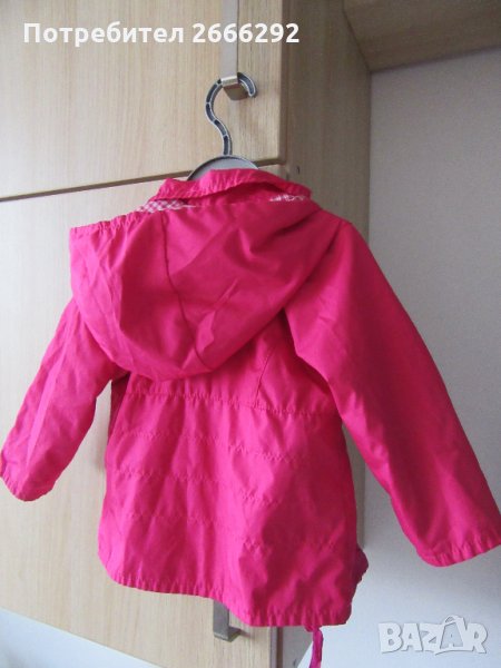 Детско яке с качулка, която се откопчава. Прибира се като дъждобран. Размер 26 - отговаря на 74 см.