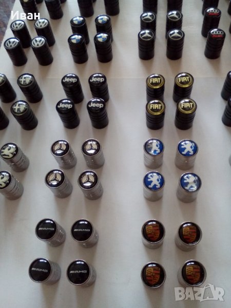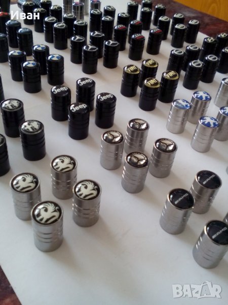 Продавам качествени метални черни кръгли капачки за вентили на гуми на различни марки автомобили .
