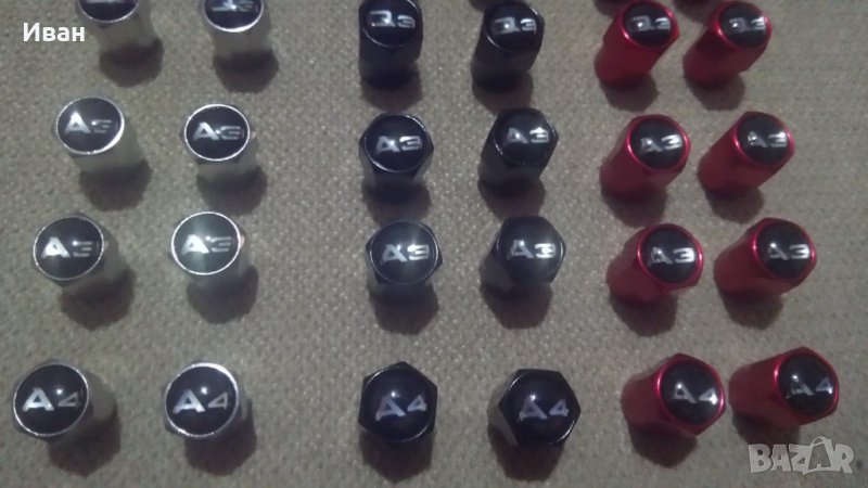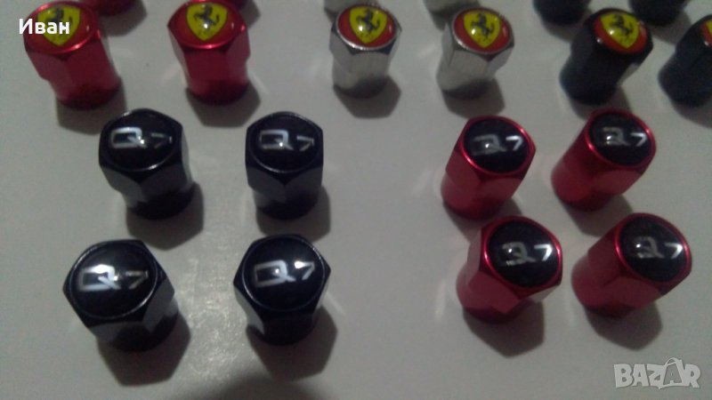 Продавам нови качествени метални капачки за вентили в различни цветове с емблеми на Ферари , Ламборгини и Ауди TT , A3 , A4 , A6 , Q3 и Q7.