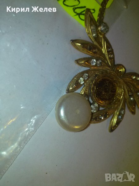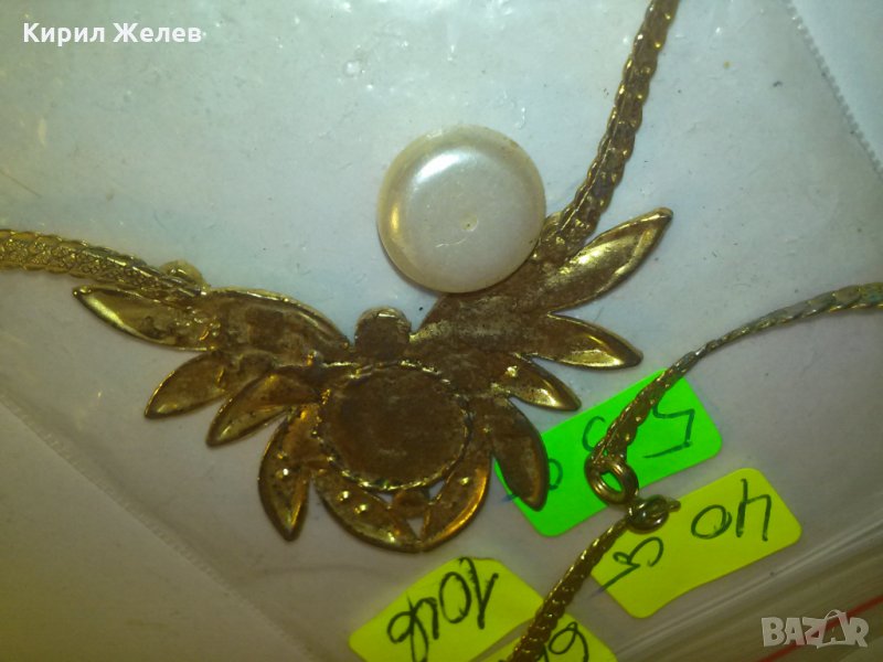 ПОЗЛАТЕНО СТАРО КОЛИЕ с ГОЛЯМ БИСЕР ПЕРЛА и КАМЪЧЕТА 6676