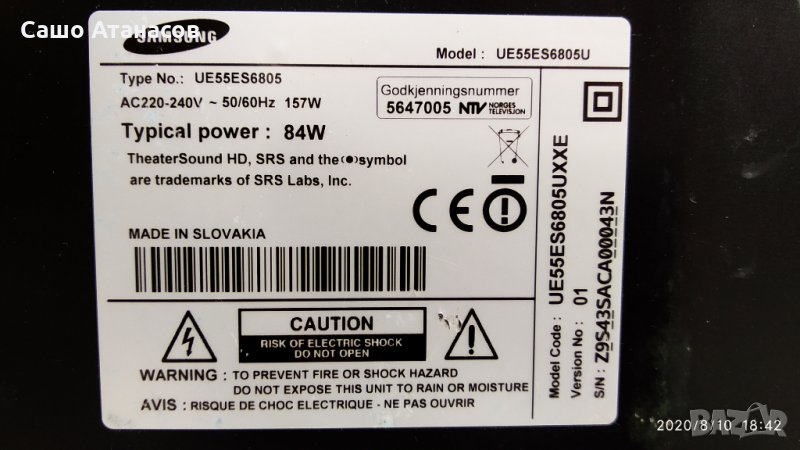 SAMSUNG UE55ES6805U със счупена матрица ,BN44-00521C , BN41-01807A ,BN41-01789A ,WIDT20R ,WIBT30A