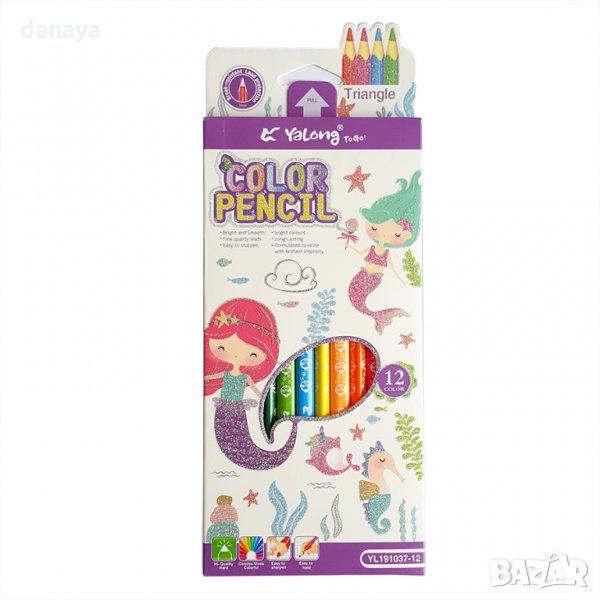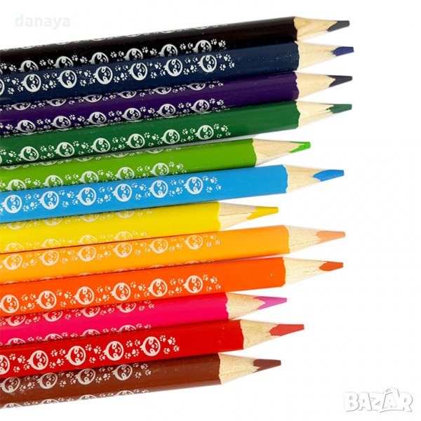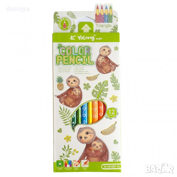 Сладурски цветни моливи за рисуване и оцветяване с принт на животни. Изработени от качествена дървесина. Лесни за подостряне. Триъгълно тяло за удобен захват. Ярки наситени цветове. Моливите са подходящи за училище и детска градина. 12 цвята в кутия.
