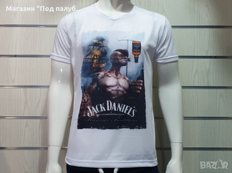 на Попай моряка, Джак Даниелс. Тениската е изработена в България под марката PRINTEX от полиестер, който запазва цялостта на материята и наситеността на цветовете дълго време. С удобна кройка, тениската е свободна и позволява максимален комфорт при носене. Професионално изработен висококачествен трансферен печат