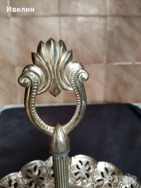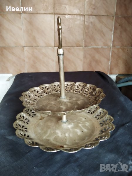 метална бонбониера в стил арт деко.висока е 21см,диаметър на платата 16см и 21см.състояние видно на снимките,