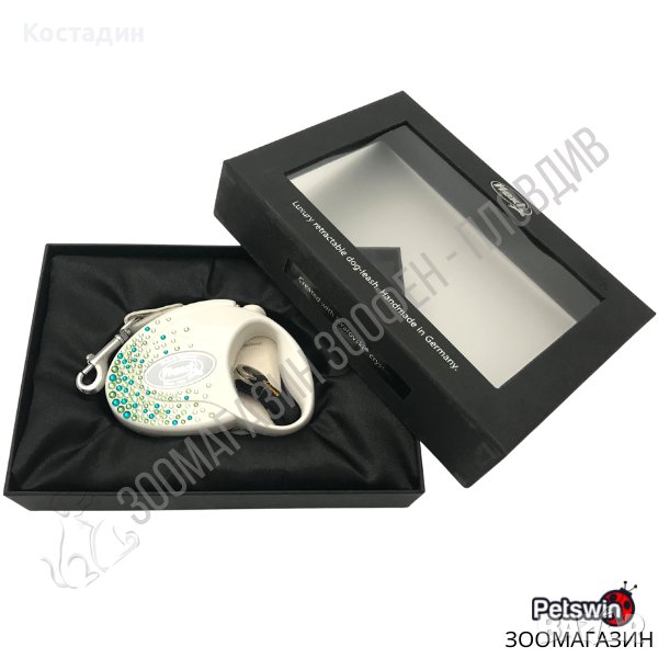 Автоматичен повод - за Куче - 3м/12кг - с кристали Swarovski - Flexi