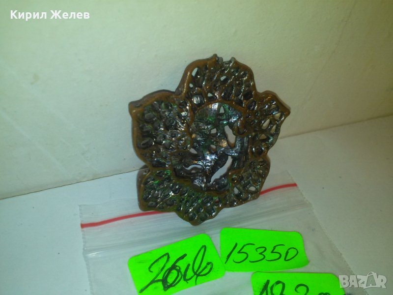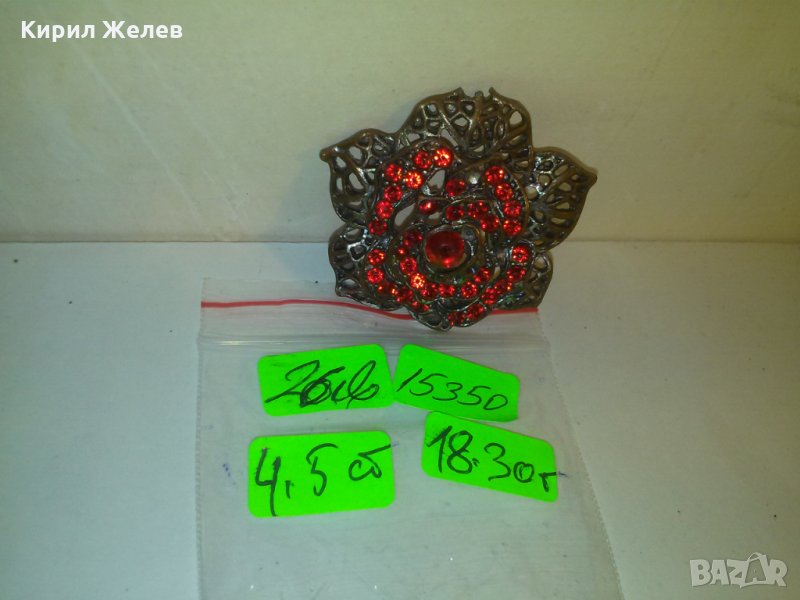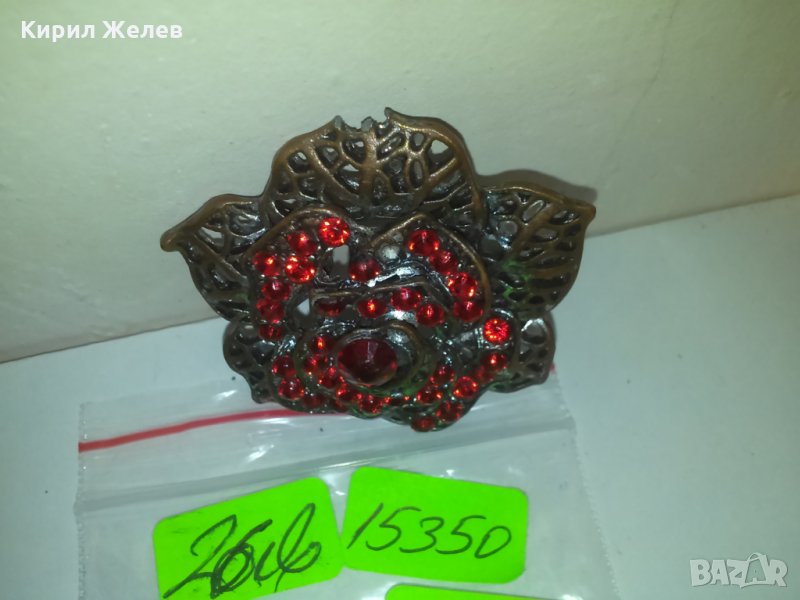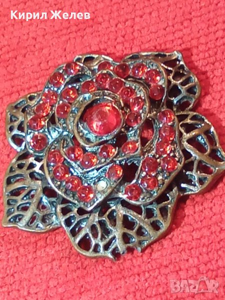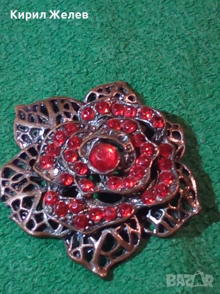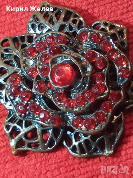 СТАРО БРОНЗОВО ФЛОРАЛНО УКРАШЕНИЕ БРОШКА с ГРАНАТИ ЧЕРВЕНИ КАМЪНИ КРИСТАЛИ 15350