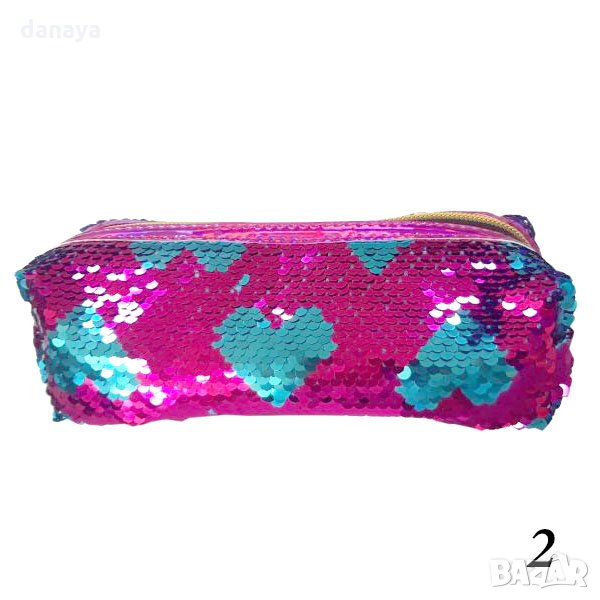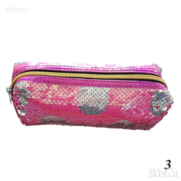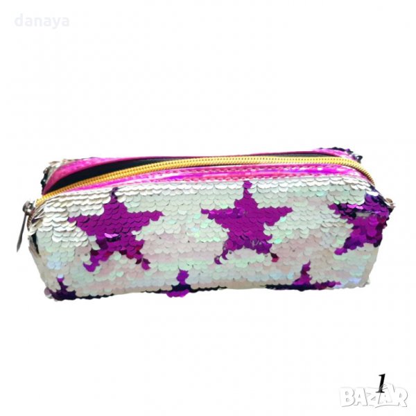 Блестящ несесер за моливи и учеически пособия с цветни пайети. Побира наистина много неща. Затваряне и отваряне с цип. Прекрасна малка чантичка с широко приложение. Може да се използва и като козметична чантичка. Предлага се в различни десени.