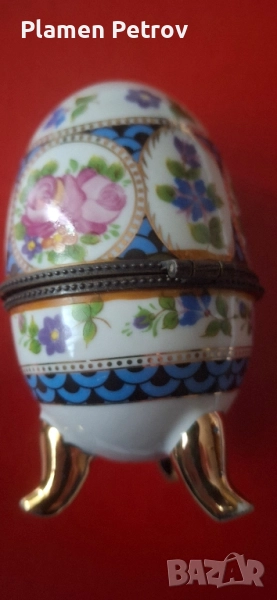 Порцеланово яйце на френската фирма LIMOGES с флорални мотиви, без забележки е