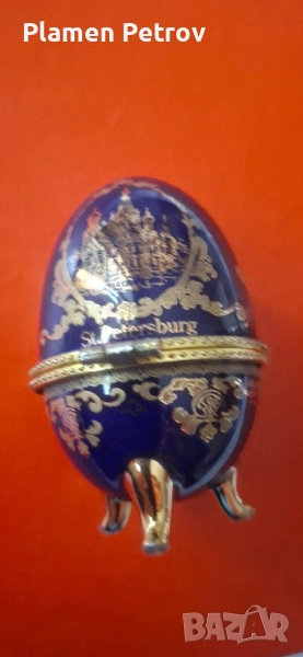 Порцеланово яйце на руската фирма АКМ, Русия и Петербург, ръчно рисувани с позлата