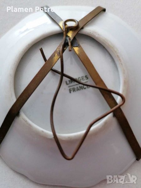 Стара порцеланова чиния на фирма LIMOGES FRANCE с диаметър 9 см и бронзов обков за стена